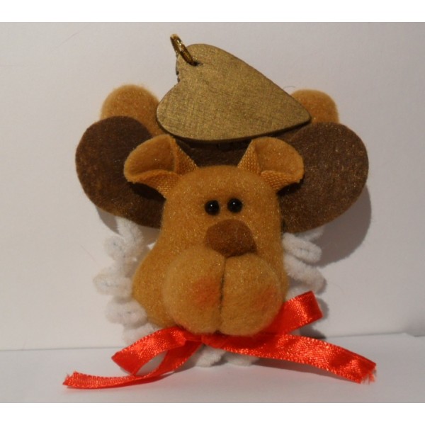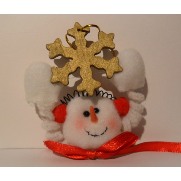 Estos graciosos muñecos estan realizados en fieltro y llevan adornos de madera, corazón, estrella y copo de nieve.